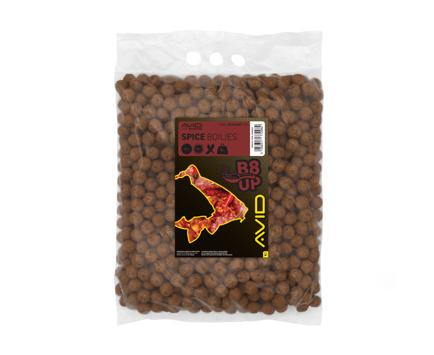 - The B8-Up Spice boilie features a deep red colour, combining the rich, natural flavours of Indian spices with subtle undertones of salami. This unique blend creates a powerful attractor, making it ideal for drawing in carp