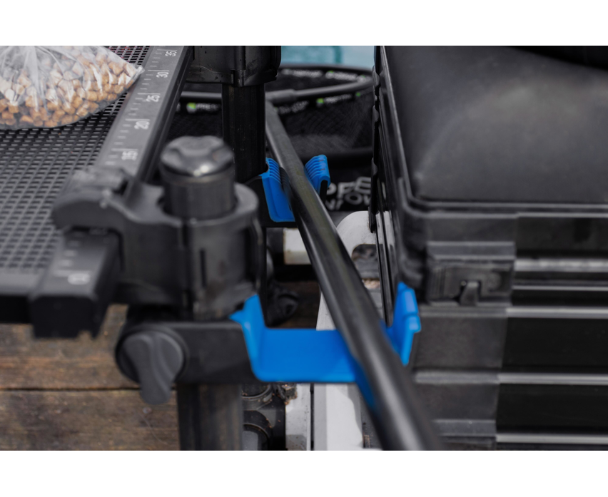 A practical two-part system designed to securely hold your landing net handle in position, making the netting process faster and more efficient. The ribbed holder provides a firm grip on the handle, while the oversized, flat rest offers stable support. The two holders can be positioned either way around, dependant on whether you prefer the grip at the front or rear of the seatbox/chair.