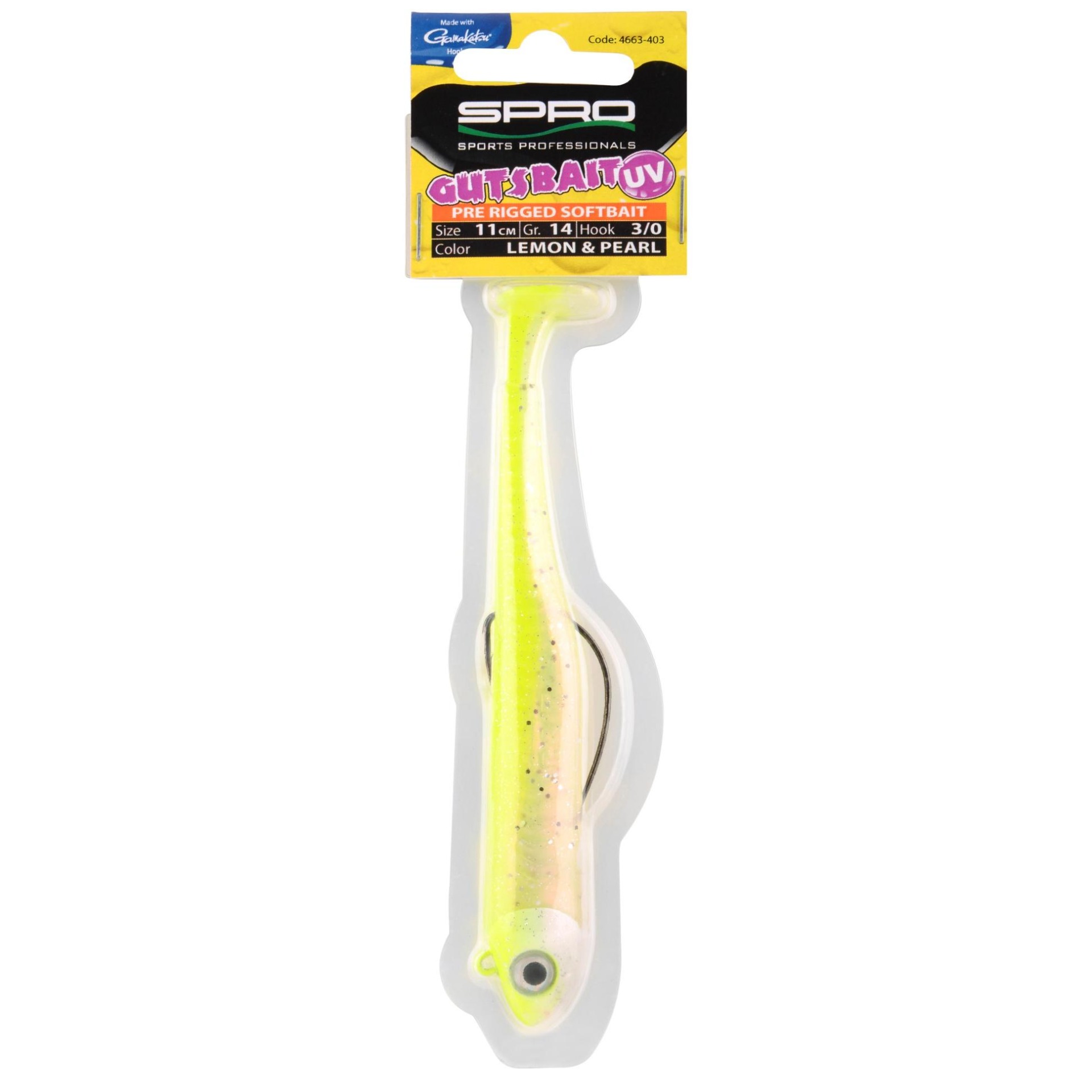 Zoals de naam al doet vermoeden zit de Gutsbait UV serie boordevol UV power voor extra aantrekkingskracht! Dit bijzondere SPRO kunstaasje is geheel opnieuw ontworpen waarbij vangkracht, kwaliteit, duurzaamheid, gebruiksgemak en inhakingsvermogen centraal stonden. Het Gutsbait UV-assortiment is supercompleet en bestaat uit pre-rigged softbaits, spare bodies, spare heads en bijpassende Gamakatsu-haken. Zo kan iedere visser zijn of haar favoriete combi samenstellen.
